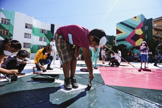 Un representante del Gobierno de Guadalajara explica a Verne que el colectivo Boa Mistura visitó por primera vez la unidad habitacional en enero de este año. Cuenta también que desde el comienzo se invitó a los 2.532 vecinos a involucrarse en el proyecto y votar por su diseño favorito entre dos propuestas, ambas con motivos huicholes. Todos los tapatíos estaban invitados a "echar una mano" en la realización de la obra, que tuvo lugar durante el mes de noviembre. En la inauguración de este viernes estuvieron presentes los alcaldes de Guadalajara y de Madrid, Enrique Alfaro y Manuela Carmena.