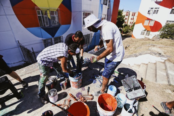 Boa Mistura es un colectivo de arte urbano originario de Madrid, que pinta las ciudades para hacerlas más humanas y participativas. Sus cinco integrantes han hecho murales por todo el mundo, pero especialmente en América: desde Brooklyn hasta Chile, pasando por varias favelas brasileñas y El Caribe. También han trabajado en países de Europa y África.