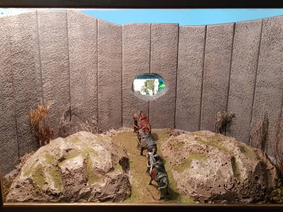 Los belenes regionales tienen detractores contados, solo los más puritanos del estilo bíblico. Con los modernos entramos en otra dimensión: tienen muchos enemigos entre los belenistas. Los belenes modernos van más allá. No solo explotan otras épocas históricas, además se atreven a lanzar mensajes. Este es un ejemplo, obra de Bastida. Pone un muro entre los Reyes Magos y el portal para criticar las políticas europeas sobre refugiados.