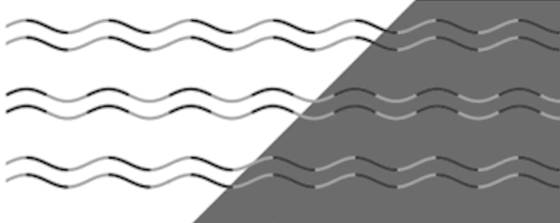 Se trata de un efecto creado por Kohske Takahashi, psicólogo de la universidad japonesa Chukyo, y publicado recientemente en la revista científica i-Perception. Takahashi habla de “ceguera a las curvas”, ya que la línea ondulada se percibe como en zigzag. El efecto se aprecia sobre el fondo gris: si nos fijamos en las primeras líneas, nos puede dar la impresión de que cambian de curvas a zigzag en cuanto el fondo blanco pasa a ser gris. En las últimas, parece que de nuevo vuelven a ser curvas cuando el fondo pasa a ser negro.