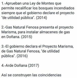 Lo que se contaba: Miles de personas se creyeron un mensaje muy compartido en redes sociales tras el incendio de Doñana en junio. El bulo sugería que las llamas habrían sido provocadas por empresas con intereses económicos en esta zona natural. El bulo se repitió con una estructura parecida en septiembre, tras los incendios de Galicia.