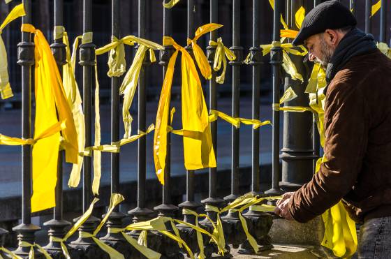 En Cataluña, el color ha sido el amarillo: políticos y simpatizantes de los partidos independentistas lucen lazos amarillos desde octubre, para protestar por el encarcelamiento de varios exconsellers del gobierno y de los líderes de ANC y Òmnium Cultural. Además de lazos, muchos llevan bufandas, gorros y otras prendas de este color.