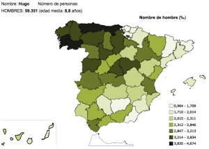 Los nombres de los Reyes Magos son, en cambio, menos exitosos que los que significan ‘Navidad’. Unos quince mil españoles tienen el nombre de uno de estos monarcas: 3768 se llaman Melchor, 6904 son Gaspar y hay 4748 Baltasares. Son nombres que no se ponen mucho a los bebés, ya que la media de edad de los tres es superior a los 50 años. Si te llamas como uno de los Reyes, en suma, tu edad se aproxima más a la de Sus Majestades que a la del niño Jesús. Y aún mayores son las mujeres con nombre de rey mago, ya que superan los 70 años quienes se llaman Melchora, Gaspara o Baltasara. Suman entre los tres nombres algo menos de 1700 personas, las menos comunes son las Gasparas.