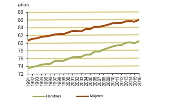 Vivimos más. Más que nuestros antepasados y más que nuestros vecinos europeos. La media del continente se sitúa en 80 años, mientras que la de España supera ligeramente los 83 años. La esperanza de vida de los hombres es de 80 años, mientras que la de las mujeres asciende a 85.