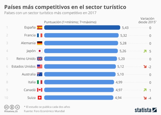 Además, por segundo año consecutivo y gracias a la seguridad, las infraestructuras y el patrimonio cultural, España se ha alzado como país más competitivo en el sector turístico en todo el mundo, según el Foro Económico Mundial.