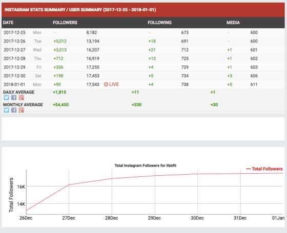 La repercusión del mensaje en Twitter ha sido tal que el número de seguidores de la cuenta de Libby Burkhalter en Instagram se ha disparado. En este gráfico extraído de la herramienta Socialblade se puede ver el ascenso de seguidores en su cuenta desde el día 25 de diciembre. Aunque registra desde el día 25 de diciembre, cuando el tuit ya era viral, se puede comprobar el salto de 8.000 a más del doble de seguidores en apenas 48 horas.