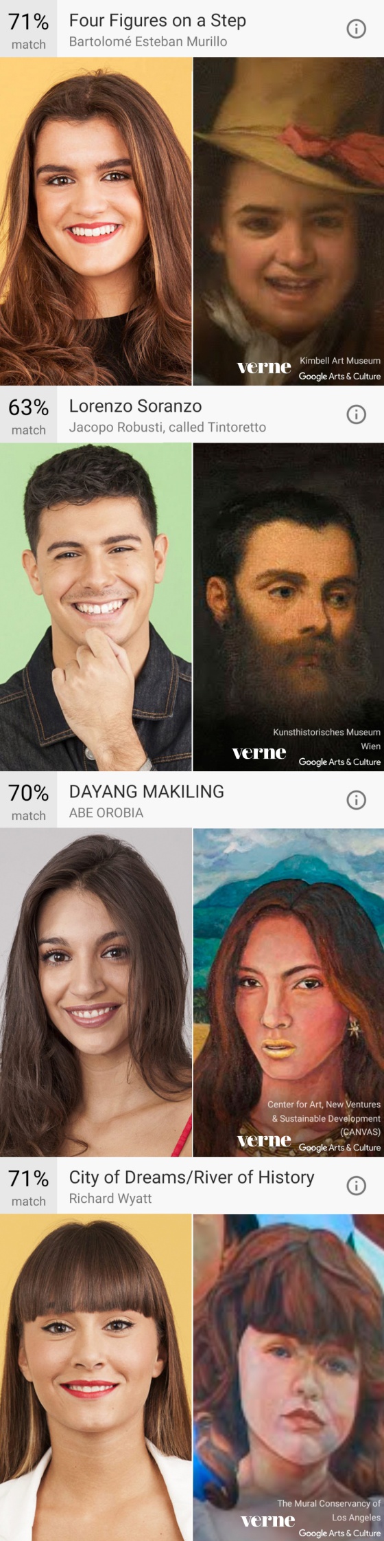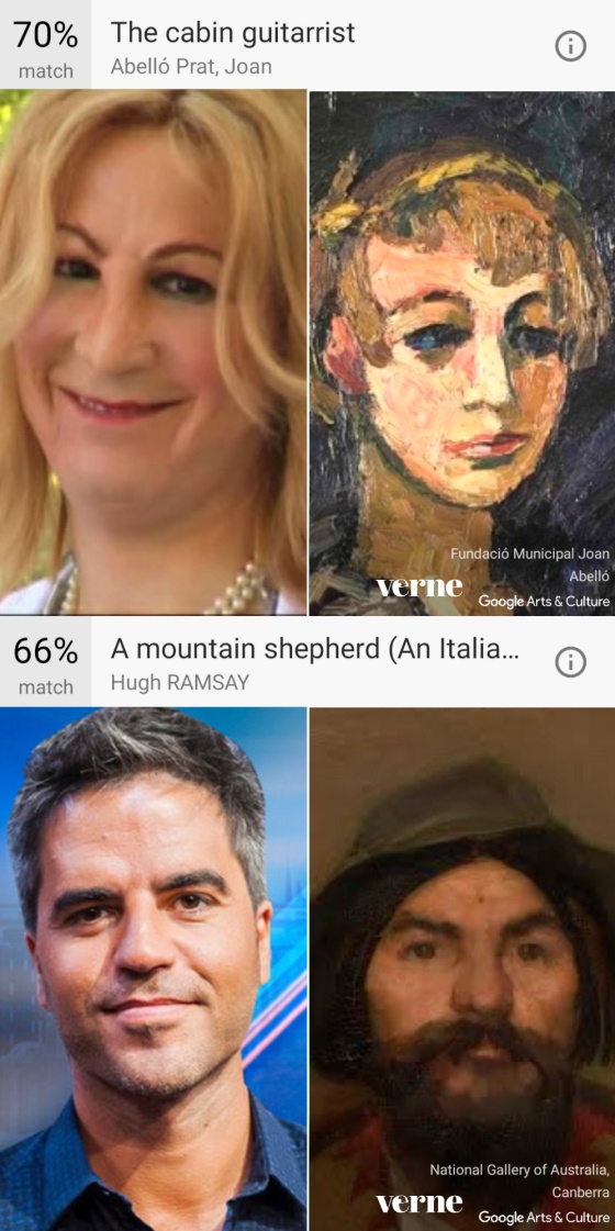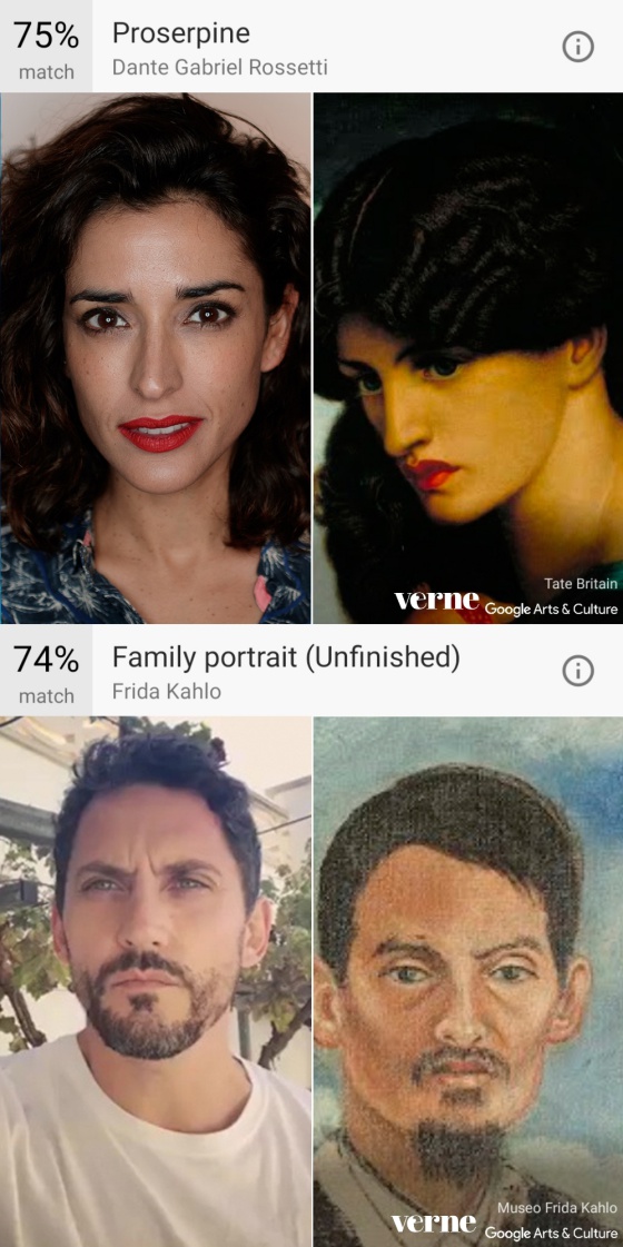 Hasta ahora, los casos eran contados y frutos del azar, pero la última actualización de la app Google Arts & Culture (Android e iOS) permite subir un selfi y localizar la obra de arte que más se nos parezca: nos dice el cuadro, el museo en el que está y el porcentaje de parecido que ha encontrado. En menos de tres días la app de Google se ha convertido en una de las más descargadas. Pretende fomentar el conocimiento y gusto por el arte. Combina su gran almacén de museos digitalizados con la inteligencia artificial para encontrar similitudes.