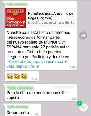En 2009, antes de WhatsApp y cuando Facebook y Twitter no eran ni la mitad que hoy, abrieron una encuesta parecida para elegir las ciudades que aparecieron en la primera versión de Monopoly España. Se registraron 40.000 votos en todo el proceso. "No se puede ni comparar. Ahora llevamos dos millones de votos y quedan dos meses para seguir votando (hasta el 17 de marzo). Las redes sociales lo han cambiado todo", añade Gaitán. En aquella votación se coló entre los elegidos el municipio toledano de Cebolla (45.600 habitantes).