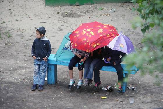 Kotenko se crio en el barrio en el que toma las fotografías. "Cuando vives mucho tiempo en un sitio, no te das cuenta de lo que pasa a tu alrededor. Solo las personas que no están allí a todas horas se fijan en lo que de verdad está pasando", dice. El ucraniano empezó a fijarse cuando iba de visita a casa de sus padres, no cuando vivía allí.