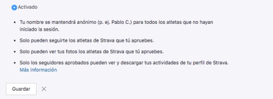 El menú de privacidad de Strava también permite activar un modo de privacidad mejorado, en el que el usuario puede aprobar quiénes son sus seguidores, y solo estos pueden ver su contenido.