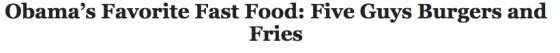 Michele Obama declaró a la prensa un mes antes haber ido de incógnito a Five Guys. Su comentario también ha ayudado a crear el título de "hamburguesa favorita de los Obama". El propio Daniel Agromayor, de Five Guys, lo utiliza en algunas entrevistas, pero no existe una declaración oficial por parte de los Obama que lo asegure.