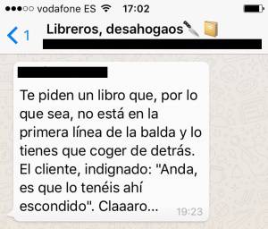 ¿Qué actitudes de los clientes sacan de quicio a los trabajadores de las librerías? Hemos creado un grupo de WhatsApp con 13 libreros y libreras de diferentes edades y establecimientos. Les propusimos desahogarse con la promesa de guardar su anonimato. Después de leerlos te lo pensarás mejor antes de pedirles que te busquen una lista de 800 libros para después llevarte dos.