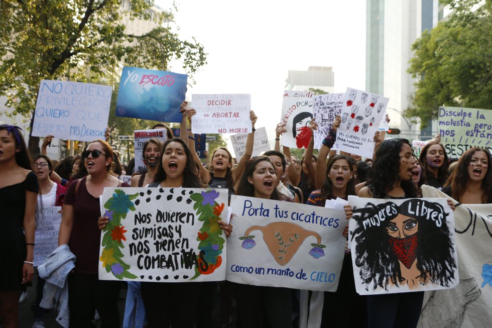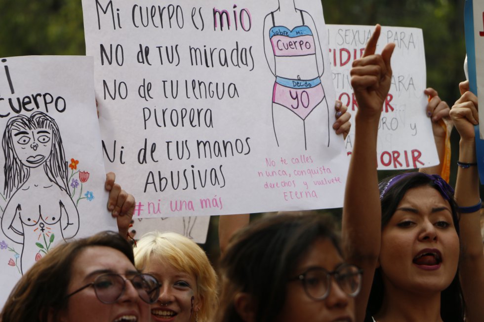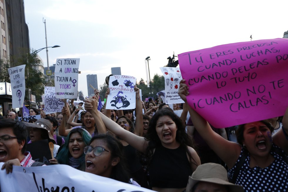Una fotógrafa de origen brasileño, Samia Negrão, ha hecho un amplio registro de quienes salieron a las calles y de los mensajes que lanzaron a través de sus pancartas. "México es un país muy difícil para las mujeres y no es tan común que tengamos este tipo de espacios de protesta", dice a Verne vía telefónica. Por eso, en su opinión, no es raro que la manifestación mexicana no haya sido tan masiva como en España. "Aún así me sorprendió y me encantó sentir la energía de todas: me dieron fuerza como mujer", sostiene la estudiante de 22 años.