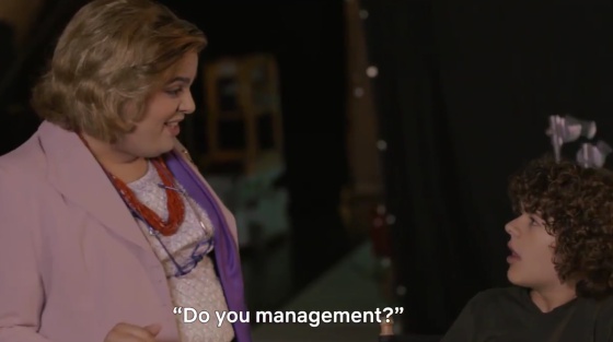"Do you management?", pregunta Paquita ante la extrañeza de los cuatro actores, que miran a la española como si estuvieran viendo a un demogorgon saliendo de la pared.
