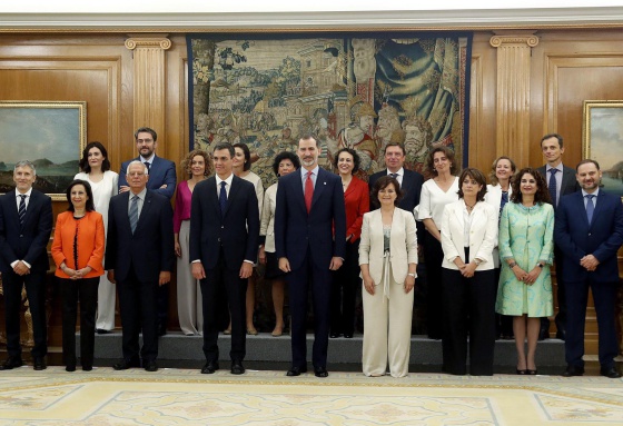 ...Once de los 18 cargos del gabinete de Pedro Sánchez los ocupan mujeres, lo que convierte a España en el gobierno europeo con más ministras.