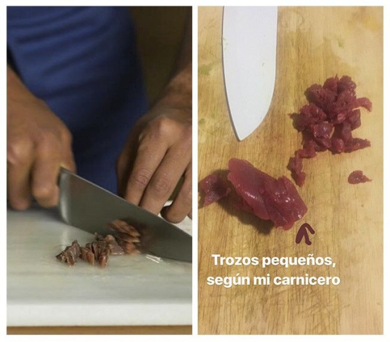 Seguimos con el solomillo de ternera. Le hemos pedido al carnicero del barrio que nos lo trocee para un tartar, pero si no los hacemos más pequeños vamos acabar llamando al 112 por atragantamiento.