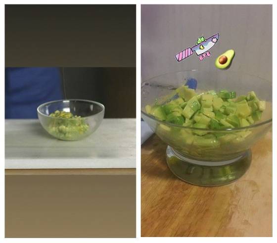 Cogemos el aguacate, lo cortamos en trocitos y le ponemos un poco de lima, aceite y sal para que no se oxide (como nos pasaba de pequeños con las peras por tardar una hora en comérnoslas).
