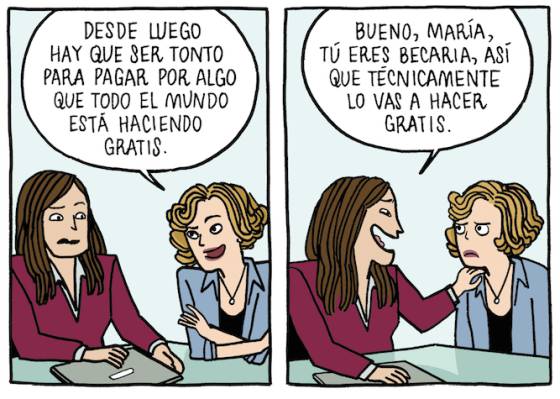 Y es que los empleados de la agencia trabajan durante jornadas interminables a cambio de sueldos mínimos, algo que según Laura Pacheco, dibujante, “no parece que vaya a caducar”. Esto les ha permitido crear a unos personajes con los que es posible empatizar, a pesar de que están haciendo cosas que no son del todo éticas.