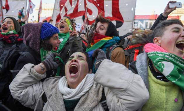 Cientos de miles de mujeres aguantaron acampadas frente al Congreso. Ni el frío, ni el sueño, ni el cansancio fueron excusa para moverse de las puertas del palacio legislativo y tomar la mitad de la plaza en la que las dejaron establecerse. Tras una votación muy reñida, la decisión estaba tomada: 129 votos a favor y 125 en contra. Argentina ha dado un paso muy grande en los derechos de las mujeres que sabe a victoria. Los legisladores que votaron a favor y muchos periodistas dentro de la cámara también festejaron la decisión: