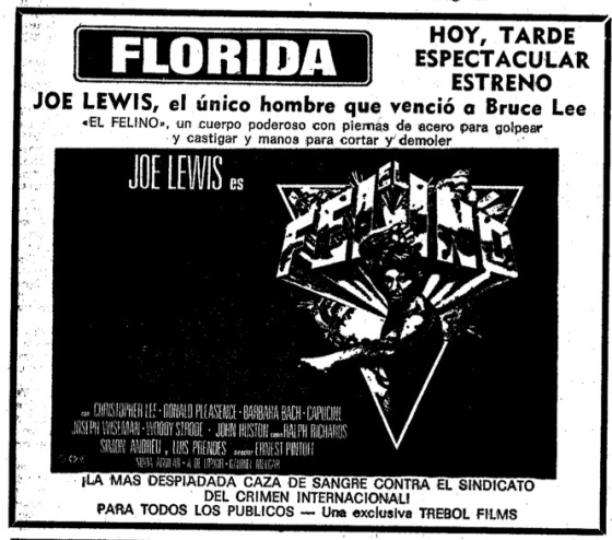 Jaguar Lives! (traducida al español como El Felino) es una película del género conocido como exploitation, que abusaban de acción, golpes y explosiones. En su tesis Medios, imágenes y memoria: el Valle de los Caídos, la doctora en Comunicación y Propaganda Belén Moreno, la resume así: