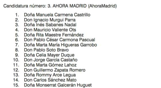 Sin embargo, en la lista de Ahora Madrid no aparecía la afiliación junto a los nombres. Tampoco se mostrarán en la papeleta de la agrupación de electores.