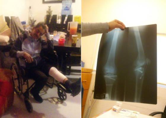 Como consecuencia del derrumbe, Méndez padeció una fractura múltiple de rótula. Aunque los gastos de recuperación los absorbió una fundación, el obrero señala que la recuperación ha sido difícil. “Primero fue una operación en la Cruz Roja, pero después tuvieron que volver a operarme porque uno de los aparatos que me pusieron se rompió dentro. Me dolió muchísimo”, detalla.