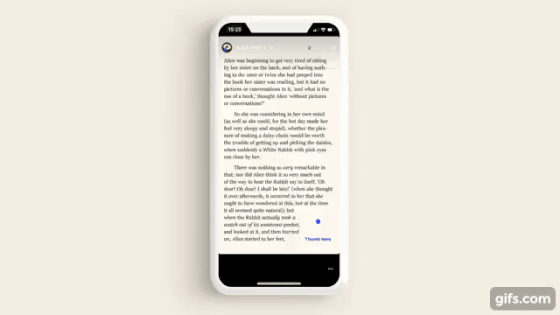¿Pero cómo se lee en una pantalla de móvil a través de las stories? ¿Es fácil y cómodo? Para la letra, los diseñadores han elegido la fuente Georgia, una de las primeras tipografías que se diseñó para que fuera fácilmente legible en cualquier pantalla. Para sujetar la página y que el libro no avance solo antes de terminar de leer, basta con mantener el dedo en la imagen, en una zona que viene indicada en cada imagen. Además de eso, estas stories no desaparecen a las 24 horas, sino que se conservan como highlights (destacados) en el perfil de la biblioteca, donde se pueden consultar aunque no se siga su cuenta. Por si el funcionamiento sigue sin quedar claro, hay un tutorial colgado en su cuenta de Instagram.