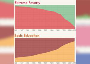 Que Max Roser haya recordado este gráfico no es casual. Este economista de la Universidad de Oxford estudia tendencias económicas y sociales a largo plazo, mostrando lo mucho que hemos avanzado en problemas como la extrema pobreza y la alfabetización. No se trata de un ejercicio de complacencia, sino de mostrar que los problemas “se pueden solucionar”, como explicaba en una entrevista concedida a Verne.