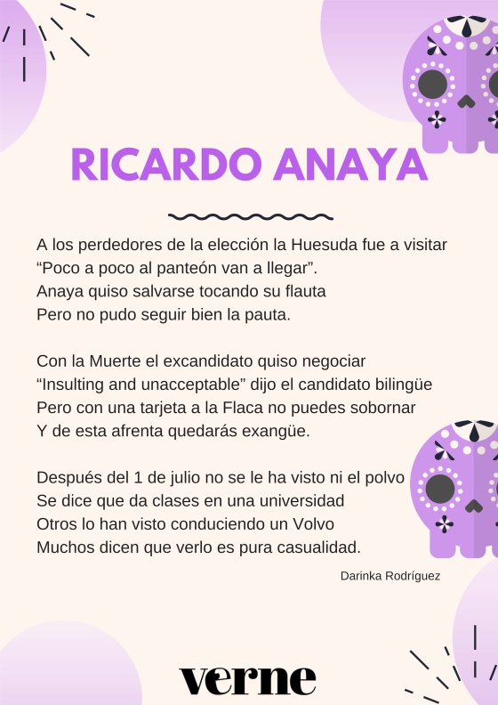 En Verne dedicamos estas rimas a personajes políticos que fueron protagonistas de la vida pública en 2018. Este año, Enrique Peña Nieto y su gabinete concluyen su administración, además de que hubo personajes que no llegaron a la presidencia como Ricardo Anaya o José Antonio Meade. También fuimos testigos de la condena de nueve años de prisión al exgobernador veracruzano Javier Duarte y la justicia mexicana ha decidido emprender acciones en contra de su esposa, Karime Macías.