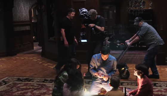 "La primera parte exigía esconder a los actores jóvenes que interpretan a los niños de la familia Crain para que pudieran reemplazar a sus compañeros adultos durante el movimiento de cámara de 360 grados en torno a Timothy Hutton. Los adultos volvían a su lugar de inmediato un momento después".
