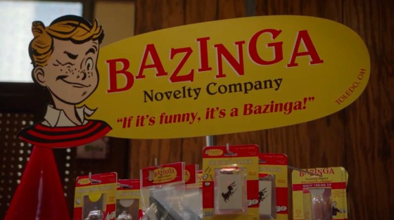 Dichos objetos eran fabricados por la marca Bazinga y la frase promocional era “¡Si es gracioso es un bazinga!”. El episodio remata con la versión adulta de Cooper declarando: “Así fue como Sheldon se convirtió en el bromista que todos sus amigos conocen y aman”.