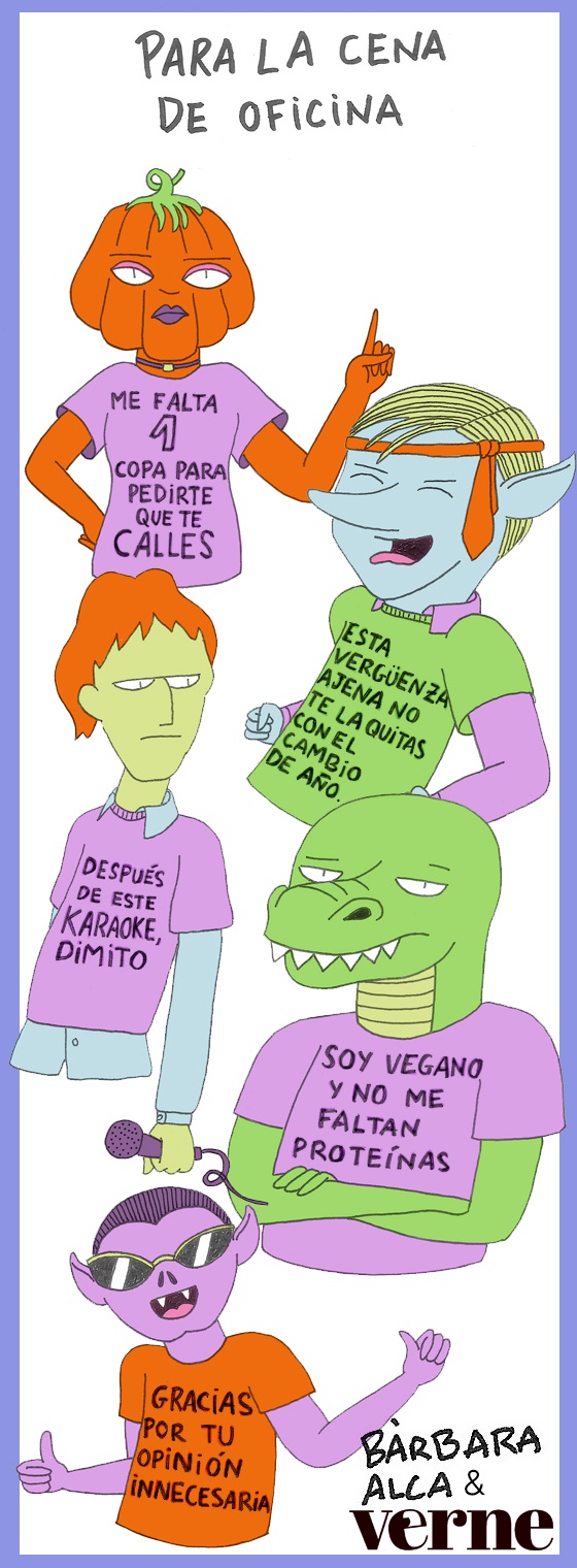 Para ahorrarte tiempo y saliva, la ilustradora Bàrbara Alca ha creado estas 10 camisetas para ayudarte a zanjar discusiones navideñas antes de empezarlas.