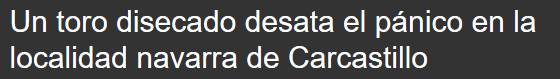 Bueno, la verdad es que algo parecido había ocurrido, tan solo unos días antes, en la población navarra de Carcastillo. Las redes sociales sirvieron, tal y como relata esta noticia del 30 de julio en EITB, para que se expandiera el rumor de que un toro rondaba las cercanías del pueblo. La realidad es que el toro estaba disecado y protagonizaba una sesión de fotos.