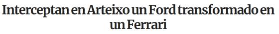 Más que "transformado en un Ferrari", habría que decir "disfrazado de Ferrari". Según esta noticia publicada el 19 de noviembre en La Voz de Galicia, la Policía interceptó en un control rutinario a dos individuos cuando circulaban en un vehículo con el emblema de la marca italiana, pero cuya matrícula correspondía a un Ford Cougar. Las investigaciones determinaron que los dueños habrían aprovechado la estructura y el motor de un Ford Cougar y le habrían añadido piezas de imitación de Ferrari para previsiblemente tratar de venderlo.