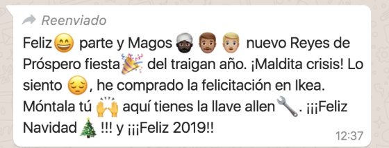 ¡Viva la tecnología!#tecnología #whatsapp #fiestas #navidad #felicitación #comida #quicojubilatahttps://t.co/KvKzgvPutW pic.twitter.com/91AZEgkF4C