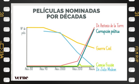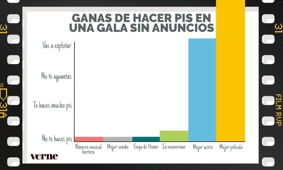 La del 2019 es la XXXIII edición de los Goya. Han pasado ya 32 ediciones en las que se han vivido situaciones que se repiten prácticamente gala tras gala: eternos nominados, discursos demasiado largos (o demasiado cortos), el In memorian en el que siempre se olvidan algún nombre... Resumimos con gráficos, desde la ironía y la exageración, la experiencia de ser espectador de la ceremonia de entrega de premios del cine español.