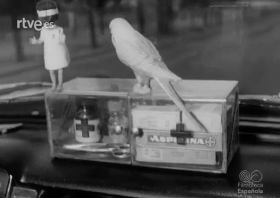 Imagina subir en un taxi y que, nada más montarte, descubras que tienes a tu disposición cartelera de espectáculos, un diccionario, un surtido de revistas, un botiquín, un expendedor de tabaco y cerillas y hasta un difusor de perfume. Podría ser el futuro –salvo por el tabaco–, pero pasó en Madrid en los años 60: un reportaje del No-Do que habla de este pintoresco taxi se ha popularizado, más de 50 años después, a través de WhatsApp. Sus conductores eran los taxistas Demófilo Martínez y Julián Gallego.