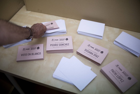 El voto en el resto de primarias del PSOE está reservado a los militantes, tanto para cargos del partido como para los candidatos europeos, autonómicos y municipales. También se establece un sistema de votación en dos vueltas, pero, a diferencia del PP en sus congresos nacionales, en la segunda vuelta vuelven a votar los militantes. La mayoría de ellos eligieron a Pedro Sánchez como secretario general ante Susana Díaz en la segunda vuelta del último congreso federal, en 2017.