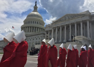 En los últimos años, es común ver este símbolo junto a los trajes de El cuento de la criada en las marchas internacionales que luchan por la despenalización del aborto. Lo ha impulsado la llamada marea verde que nació en Argentina dentro de la asociación feminista Ni Una Menos.