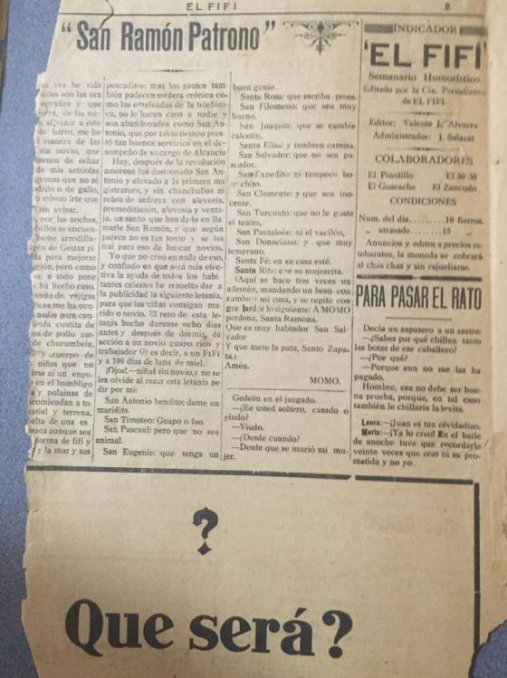 Además de asuntos políticos, El Fifí recogía en sus cuatro páginas la actividad cultural de la capital tamaulipeca. Noches de zarzuela española, ópera italiana y la actuación de talento nacional como el tenor mexicano José Merino que “con lisonjero éxito pecuniario y artístico”, conquistó al público del teatro Juárez ese diciembre de 1920. Aquel ejemplar se publicó con foto del cantante en portada incluida. También había espacio para los anuncios de los negocios locales: “No hay mejor vinatería/ Que surta una casa real/ Que la que tiene hoy en día/ Abelardo Villareal. Calle de Hidalgo, número 54”.