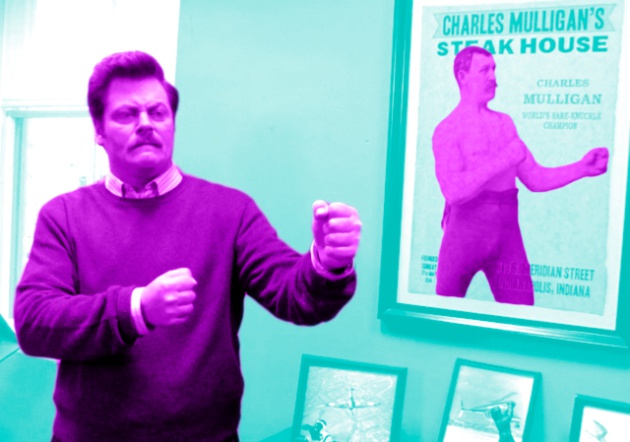 Nada que ver con Ron Swanson, al que interpreta Nick Offerman en Parks and Recreation. Swanson tiene muchos puntos en común con Donaghy: también es un conservador que cree en la propiedad privada y recela del gobierno. A ambos les gusta comer carne tan poco hecha que muge, acompañada de un buen vaso de whisky. Los dos son hombres hechos a sí mismos (o parodias de hombres hechos a sí mismos, mejor dicho): Donaghy empezó como estibador a los 12 años y Swanson trabajaba en una fábrica a los 9 (en una semana estaba ya a cargo de la planta).