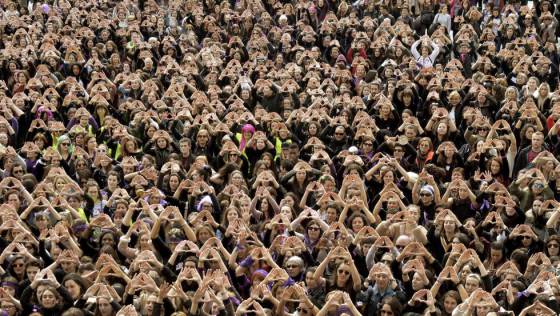 Esta fotografía de Vincent West se ha llevado un Premio Ortega y Gasset de Periodismo, fallado esta semana. Se tomó en Bilbao durante el 8 de marzo de 2018, mientras las mujeres que se manifestaban cantaban A la huelga. Aquí puedes ver un vídeo de ese momento.