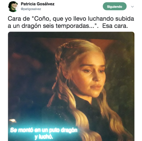 1. I’m a Khaleesi. Por supuesto, todos los enlaces de este apartado tienen espoilers pero, ¿a quién vamos a engañar? Si eres fan de Juego de tronos, ya has visto el capítulo de esta semana, incluso varias veces. Y, si no lo eres, te da igual que te destripe la trama. Pero aunque no hayas visto ni un solo capítulo de la serie, creo que te gustará leer esta divertida -e inteligente- columna de Patricia Gosálvez, este análisis de Mónica Zas, y esta reflexión de Jessica Chastain.