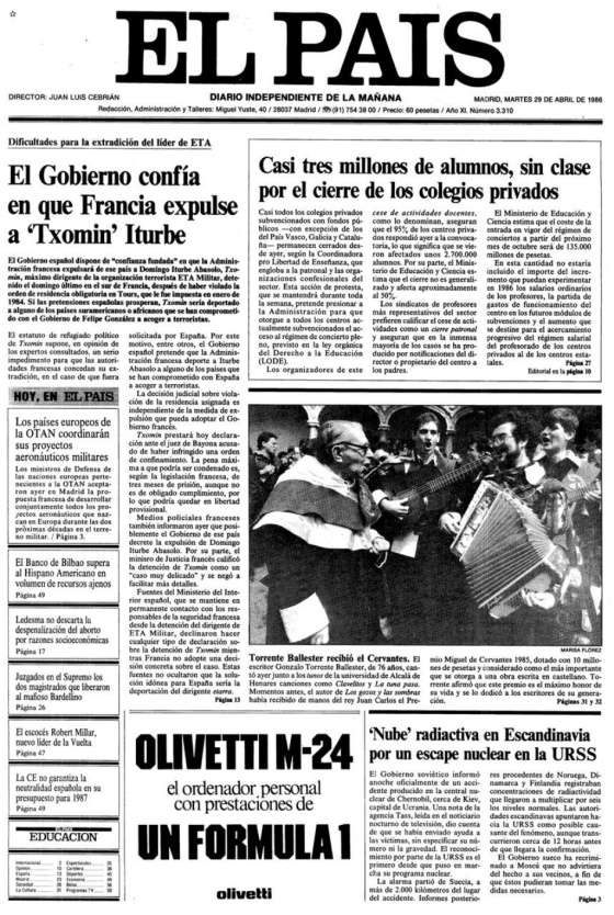 "Una nota de la agencia Tass, leída en el noticiario nocturno de televisión, dio cuenta de que se había enviado ayuda a las víctimas, sin especificar su número ni la gravedad. El reconocimiento por parte de la URSS es el primero desde que puso en marcha su programa nuclear", indicaba la noticia de EL PAÍS. ABC tituló "Desastre nuclear en la URSS" y Ya, "Alarma nuclear en Europa".
