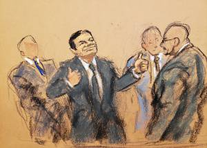 Playeras, chaquetas, un juego de vino y licoreras de metal con el nombre de Joaquín El Chapo Guzmán están a la venta bajo la marca El Chapo 701. Alejandrina Guzmán, hija del capo, presentó la línea de ropa y accesorios en el certamen Intermoda llevado a cabo en Guadalajara (Jalisco). Unas horas más tarde, el narcotraficante fue condenado a cadena perpetua por un tribunal en Nueva York.