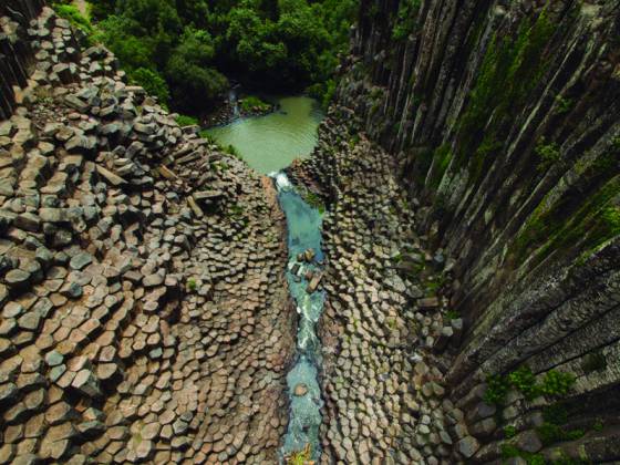 Estas estructuras de piedra se ubican en el Geoparque de la Comarca Minera, en el Estado de Hidalgo. Estos prismas son los más altos del mundo con una altura de 40 metros de altura. “son evidencia de la transformación de las rocas producto de la actividad volcánica”, explica Fitz. La especialista señala que adquieren esta forma debido a una forma eficiente de enfriamiento. “Cuando se derrama lava y entra en contacto con la superficie se compacta en forma de hexágono y se contrae hacia abajo, por eso tienen esa forma de tubo”, indica.