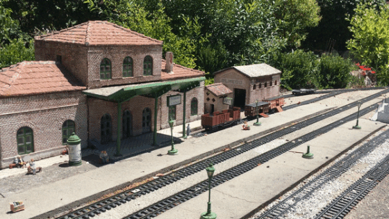 Tras pasar por la taquilla (la entrada de adulto vale 4,50 €) el visitante se topa con un mundo retrofuturista. Las edificaciones del mudéjar se mezclan con estaciones de ferrocarril muy poco mudéjares, trenes a escala que recorren el parque, vegetación, riachuelos y lagos. Las réplicas, aunque no son copias 100% exactas [puedes comprobarlo en estas fotos], dan el pego al ojo inexperto. Al comprobar que el foso de los castillos me llega por las rodillas y que puedo abrazar una torre con mis brazos, me siento Godzilla. Se me pasa cuando intento acceder al interior. Godzilla nunca se pondría a reptar para cruzar una puerta.