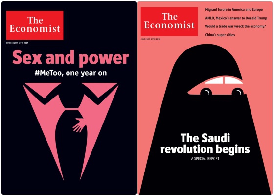 El doble discurso que plantea el relato de Margaret Atwood, con personajes femeninos que ocultan opiniones y sentimientos prohibidos bajo su peculiar atuendo, sigue la línea de las creaciones de Noma Bar. "Ella es muy buena confrontando conceptos como el bien y el mal. Y a mí me gusta lograr una imagen surrealista, en la que se ve una cosa y se cuenta otra", dice el ilustrador, que también se ha encargado de la portada de una de las ediciones de El cuento de la criada.