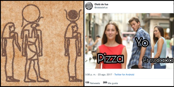 Los jeroglíficos egipcios no fueron desencriptados hasta que, en 1799, fue descubierta la Piedra de Rosetta. Es una antigua inscripción en la que un mismo texto está escrito en griego antiguo y en jeroglíficos. Los símbolos de la imagen que abre este artículo no se resuelven con la Piedra de Rosetta. Se entienden con el principal recurso del humor en internet, los memes.