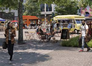Con más de 600.000 libros en su interior, la nave de acero, concreto y cristal queda inundada por la luz. Está articulada a través de pórticos, escaleras metálicas, estanterías que parecen suspendidas en el aire y plataformas en voladizo que contrastan con el esqueleto de una ballena gris que flota en la mitad de los más de 37.000 metros cuadrados de superficie. A los lados dos jardines con más de 160 especies vegetales que permiten el contacto directo con la naturaleza en medio de una de las zonas más transitadas de la ciudad. "Uno de los interiores más estimulantes del siglo", opina el experto de The Guardian.